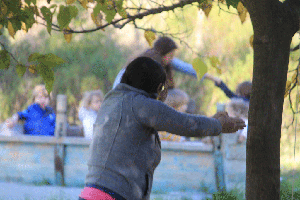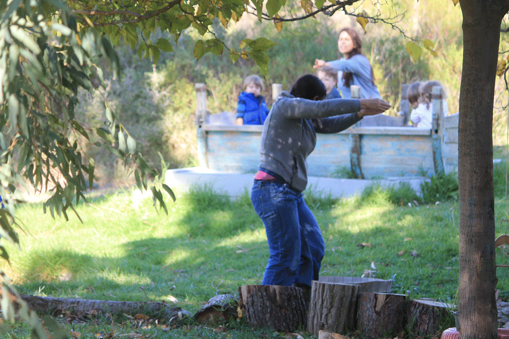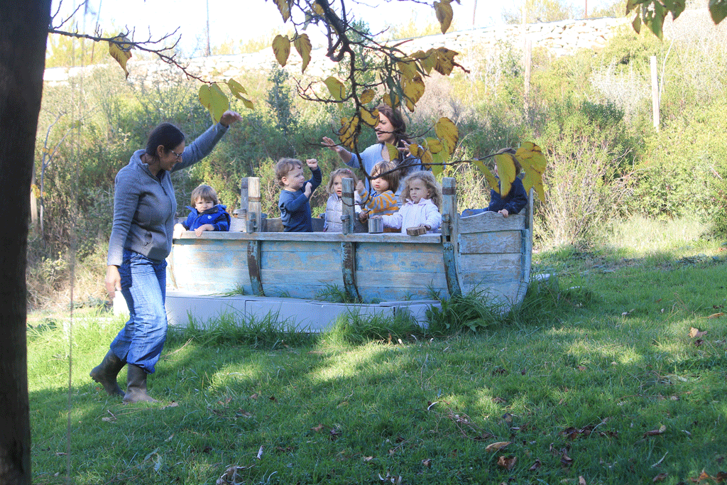 Back at the hut, the children jump into their ship, the empty grape press. (see this post on the old grape press)