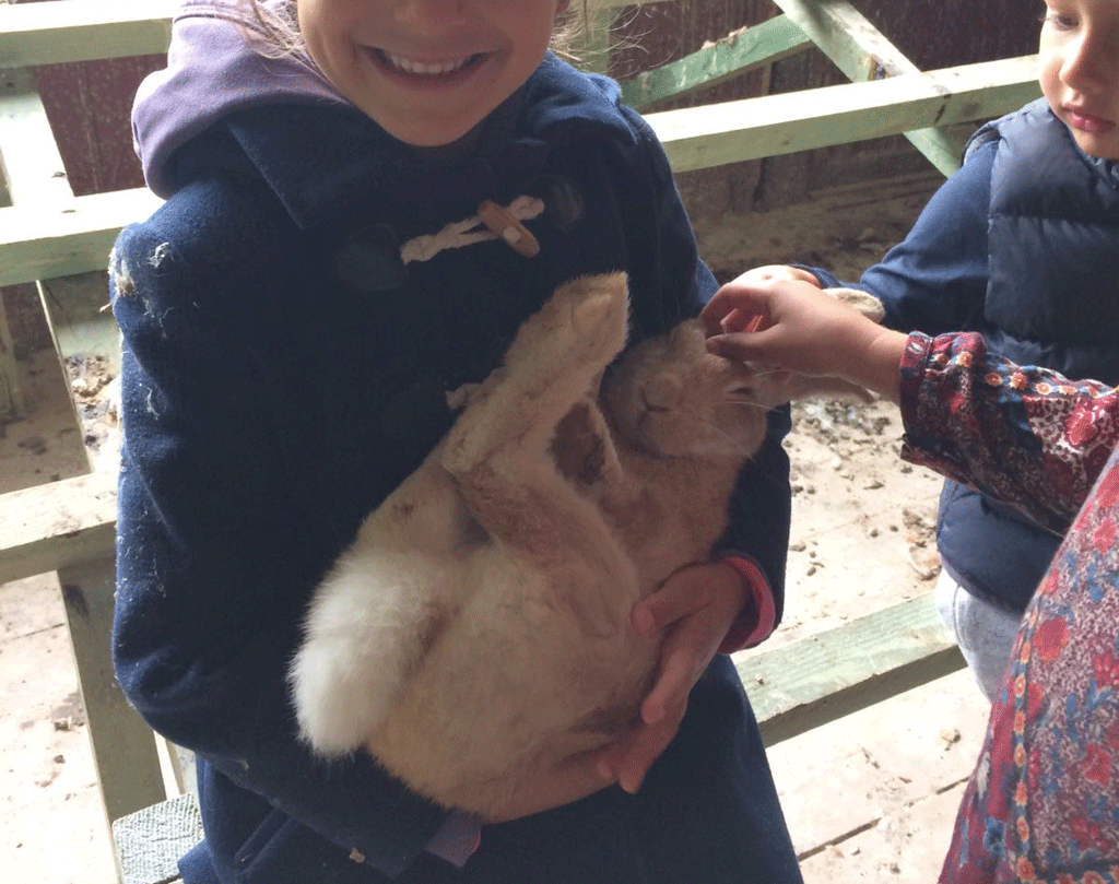 On the children’s first encounter with the rabbits we ended up chasing the rabbits around the pen trying to catch them. Caught up in the absurdity of the moment, we thought it was funny and possibly even educational for the children to see us try and fail to catch a rabbit. However, we soon realised we were passing on a far more sinister message: that it’s OK to terrify another creature for our own enjoyment. A week later, we got a taste of our own medicine. Daisy the dog, managed to get into the rabbit enclosure. The dog tore round the yard after the rabbit and two adults chased after the dog. Daisy managed to catch the rabbit by the leg, but, luckily, she was caught in time, the rabbit was released and peace was restored.
