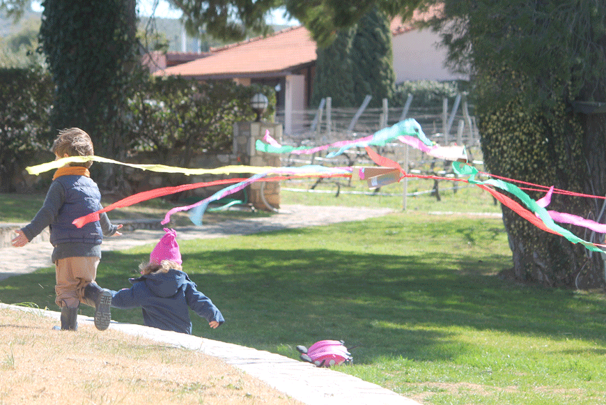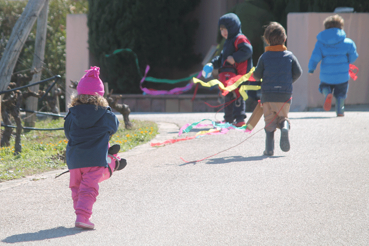 We pick up the kites and run through the vines to the waiting mothers. With a burst of colour catching the wind, we bid farewell to winter and look forward to spring.